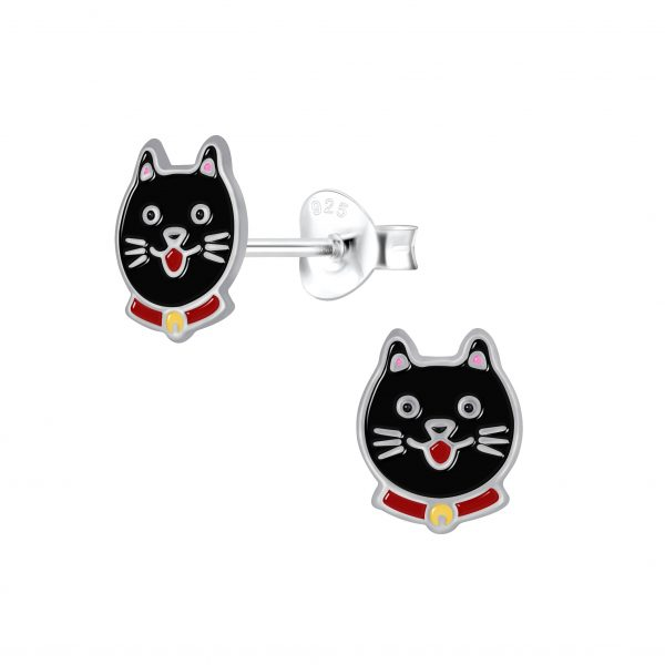 Silver Cat Stud Earrings