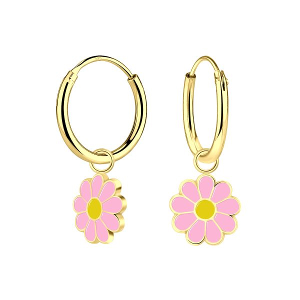 Silver Daisy Flower Charm Hoop Earrings
