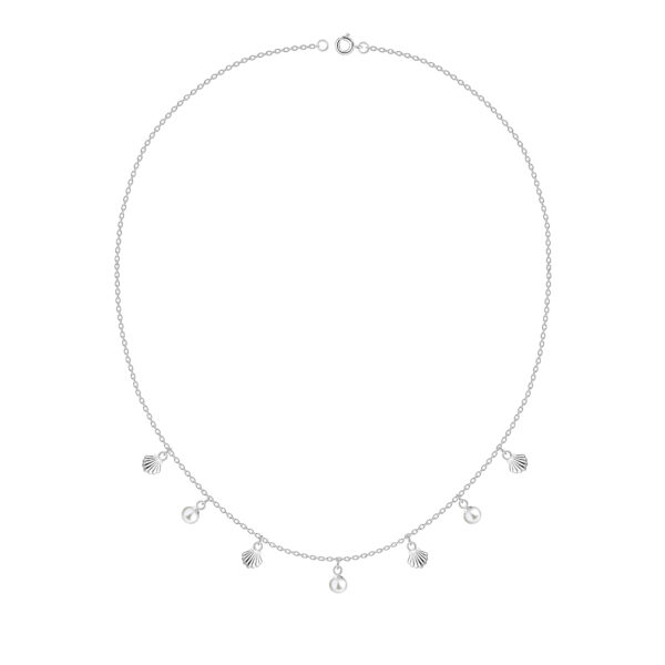 Silver Shell Necklace with 4mm Freshwater Pearl