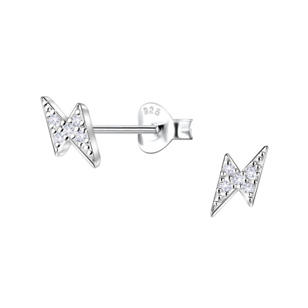 Silver Thunder Bolt Stud Earrings