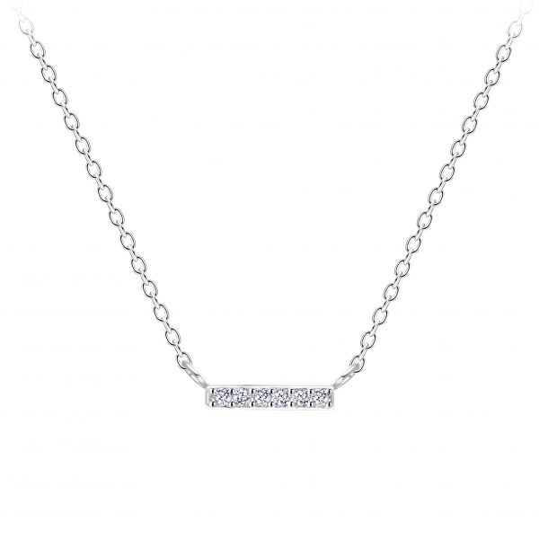 Silver Bar Cubic Zirconia Necklace