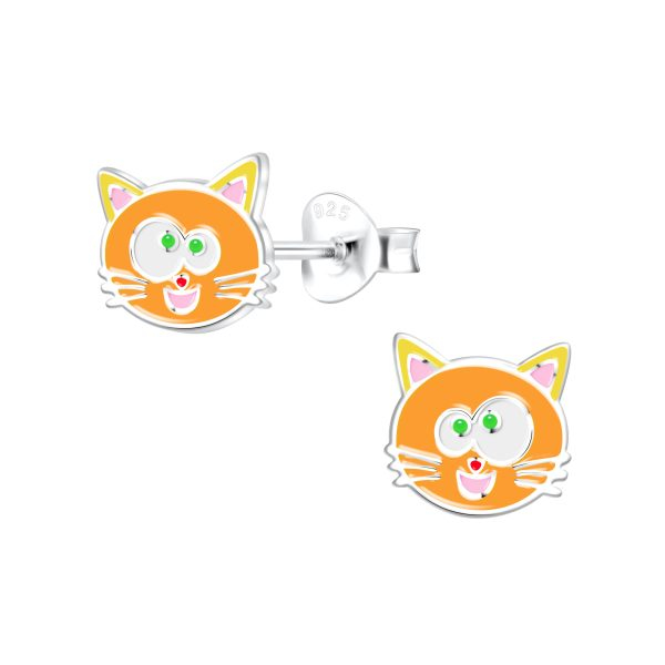 Silver Cat Stud Earrings