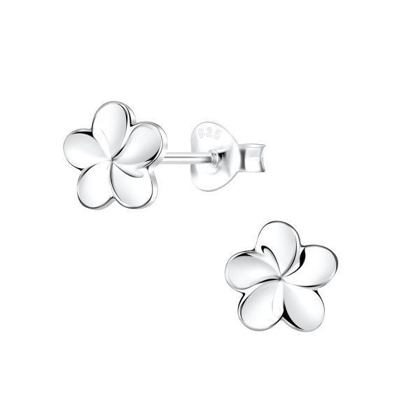 Silver Plumeria Flower Stud Earrings