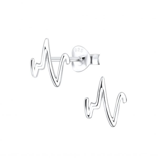 Silver Heartbeat Stud Earrings