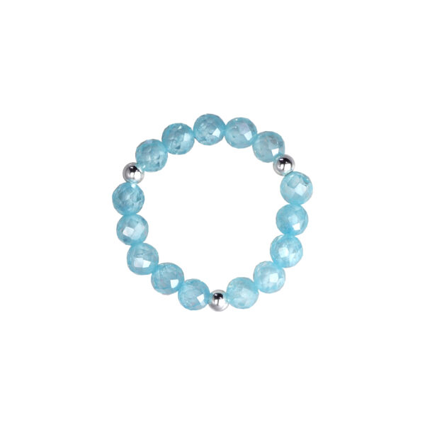 Silver Ball and Cubic Zirconia Bead Elastic Ring