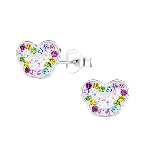 Silver Rainbow Butterfly Stud Earrings