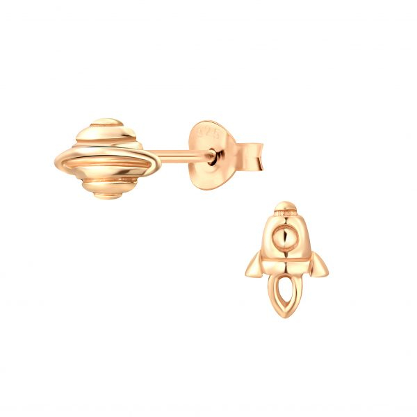 Silver Rocket and Saturn Stud Earrings