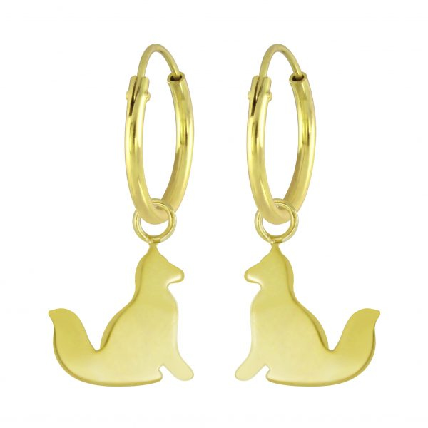 Silver Fox Charm Hoop Earrings