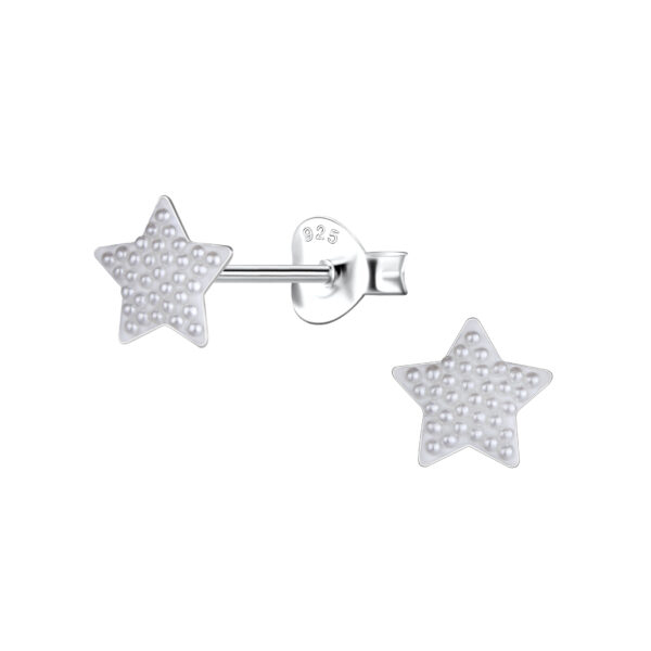 Silver Star Stud Earrings with Pearl