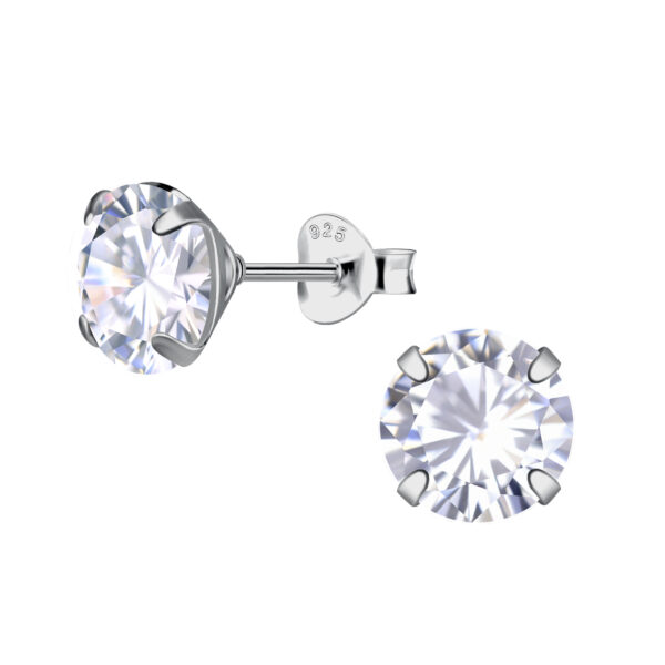 8mm Round Cubic Zirconia Silver Stud Earrings