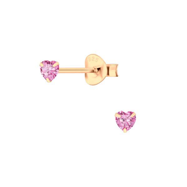 3mm Heart Cubic Zirconia Silver Stud Earrings