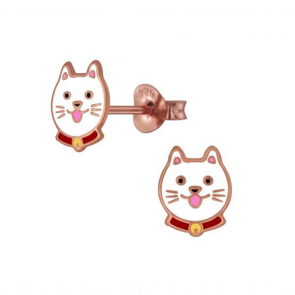 Silver Cat Stud Earrings