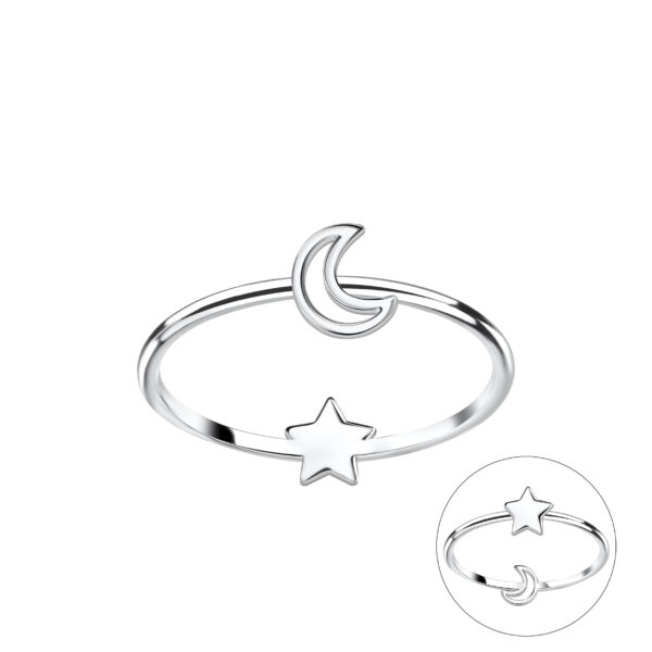 Silver Double Sided Moon and Star Ring