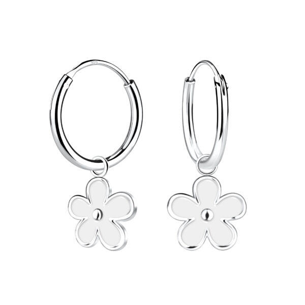 6mm Square Cubic Zirconia Silver Charm Hoop Earrings