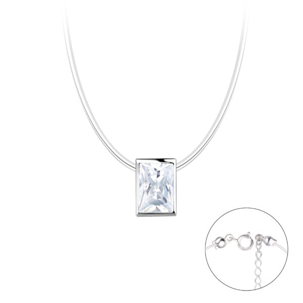 4x6mm Bagutte Cubic Zirconia Silver Invisible Necklace