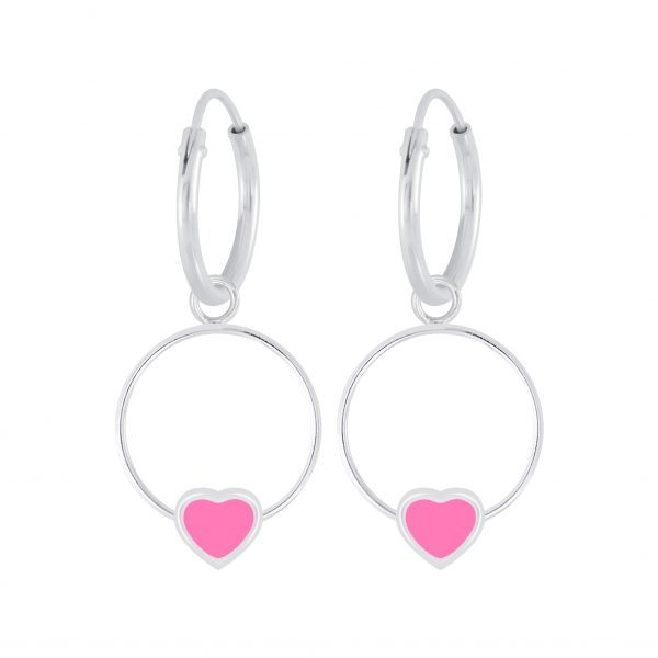 Silver Heart Wire Charm Hoop Earrings