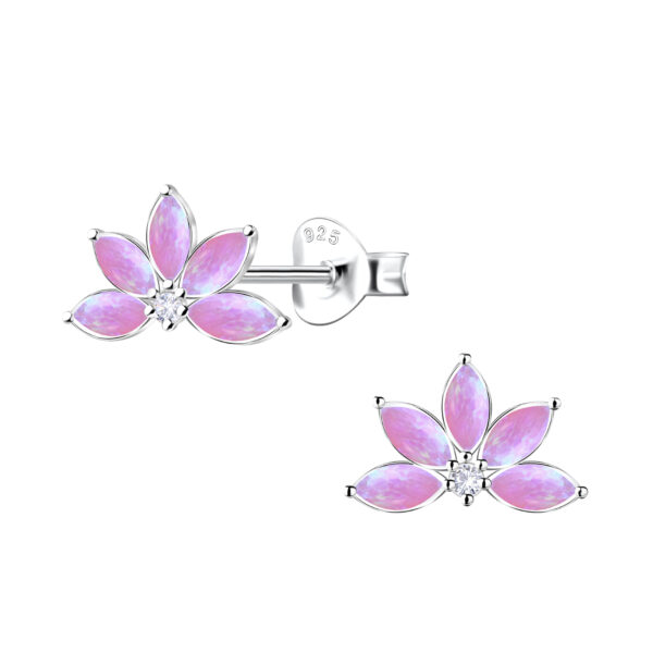 Silver Geometric Opal Stud Earrings