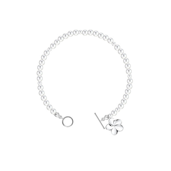 Silver Flower Imitation Pearl Bracelet with T-Lock