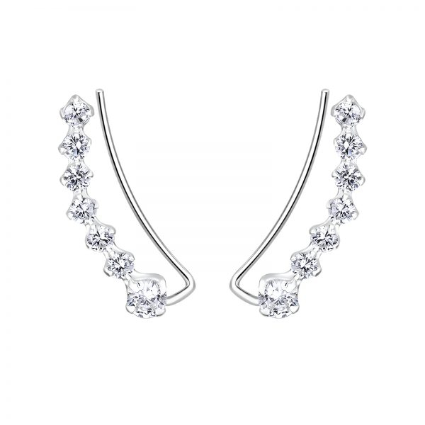 Silver Curved Line Cubic Zirconia Ear Climbers