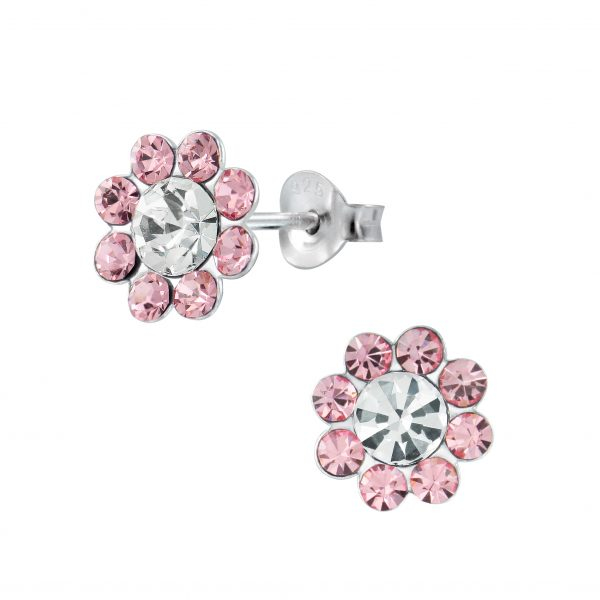 Silver Crystal Flower Stud Earrings