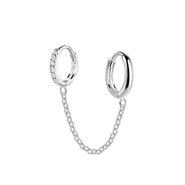 11mm Silver Double Huggie Earrings with Chain