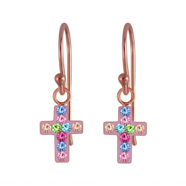 Silver Cross Crystal Earrings