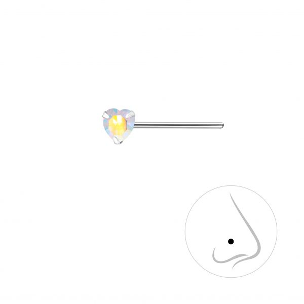3mm Heart Cubic Zirconia Silver Nose Stud