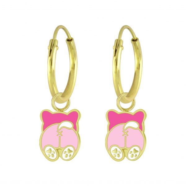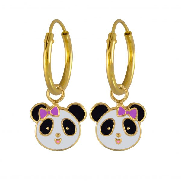 Silver Panda Charm Hoop Earrings