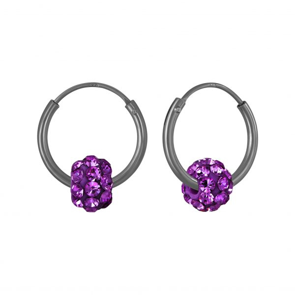 Silver Crystal Ball Hoop Earrings