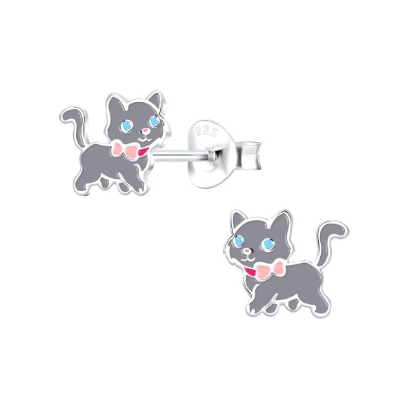 Silver Cat Stud Earrings