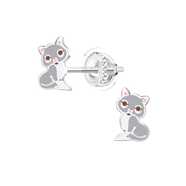 Silver Cat Screw Back Earrings