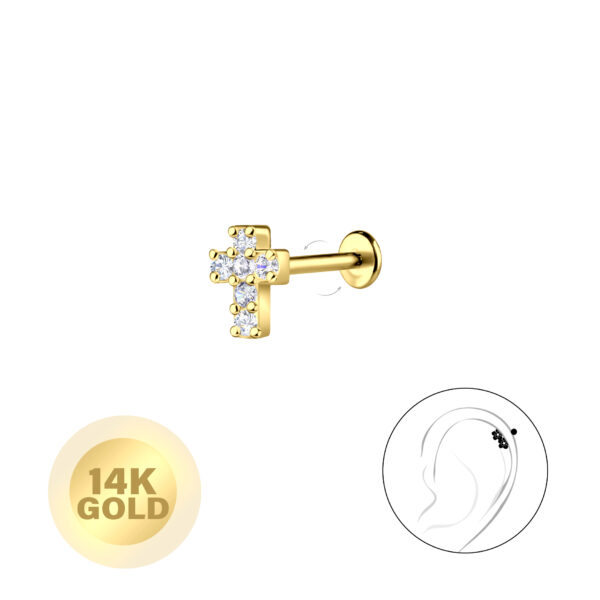 14K Solid Gold - Cross Labret with 3mm Disc