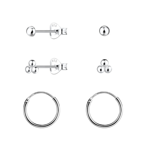 Silver Ball Stud and Hoop Earrings Set