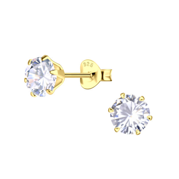 6mm Round Cubic Zirconia Silver Stud Earrings