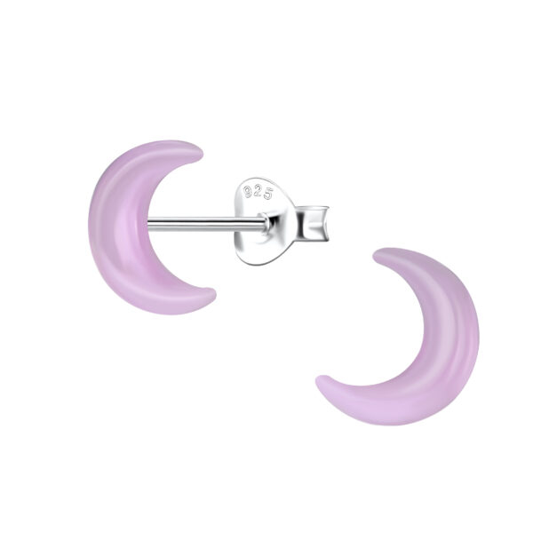 Silver Stud Earrings with Resin Moon