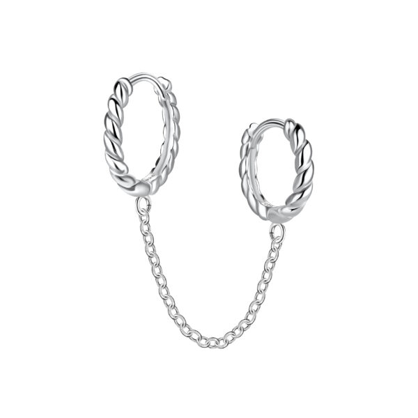 Silver Double Twisted Huggie Earrings with Chain