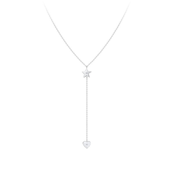 Silver Star and Heart Y Necklace