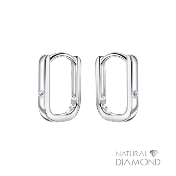 10mm Silver Single Stone Huggie Earrings With Diamond