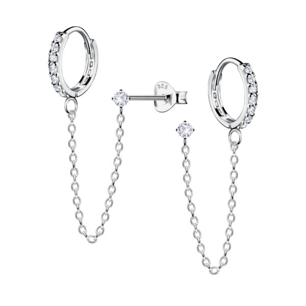 12mm Silver Huggie with 2mm Round Cubic Zirconia Stud Earrings