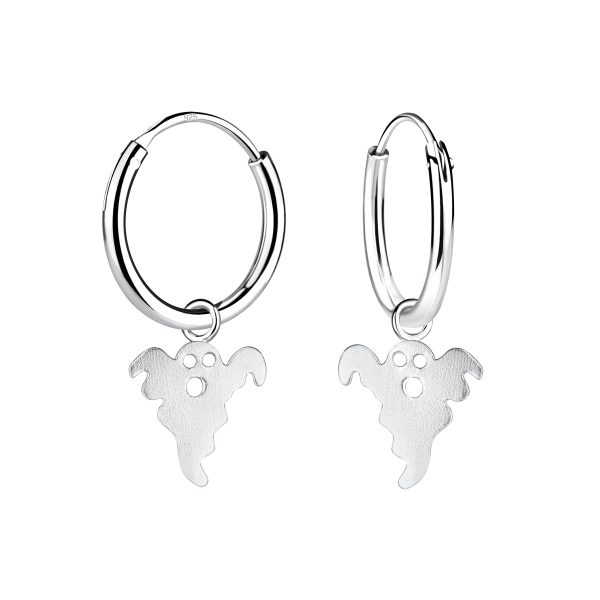 Silver Ghost Charm Hoop Earrings