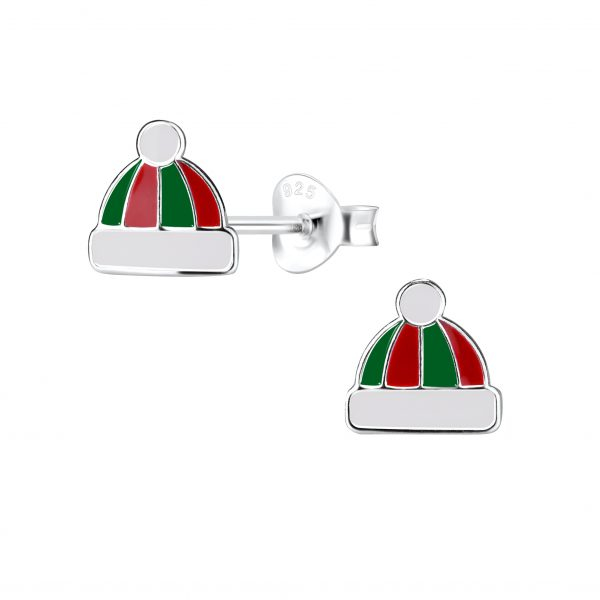 Silver Christmas Bear Charm Hoop Earrings