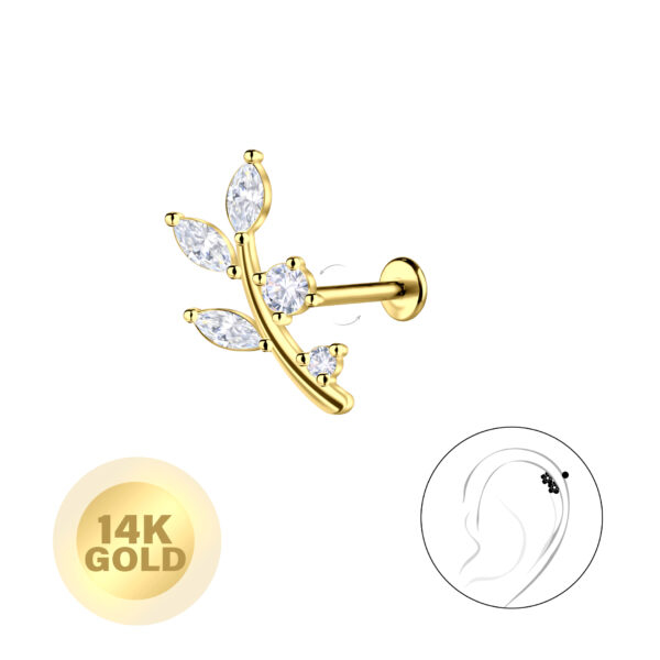 14K Solid Gold - Leaf Labret with 3mm Disc