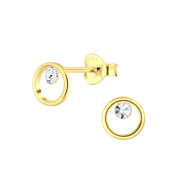 Silver Circle Crystal Stud Earrings