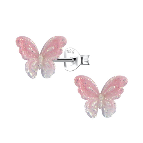 Silver Stud Earrings with Resin Butterfly