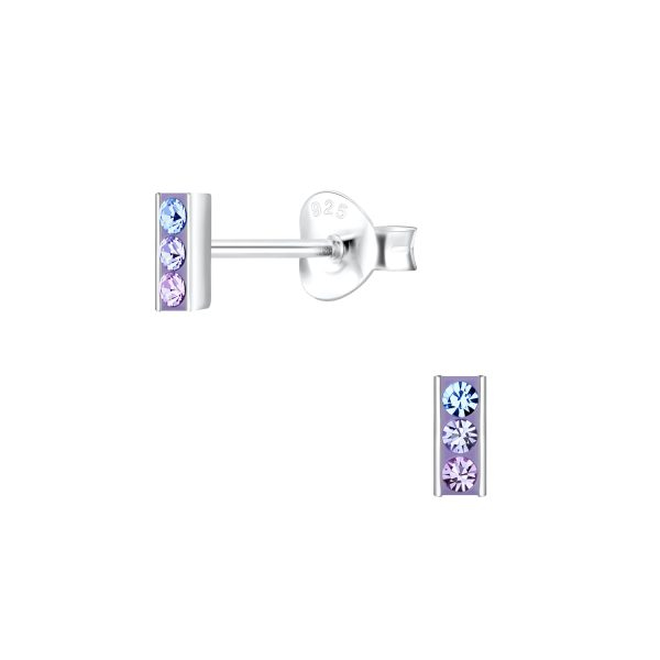 Silver Bar Crystal Stud Earrings