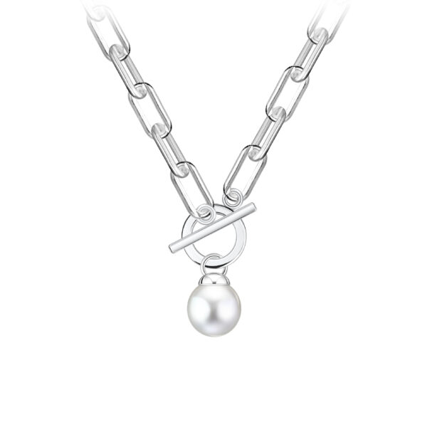 43mm Silver Toggle Square Cable Necklace with 6mm Hanging Pearl