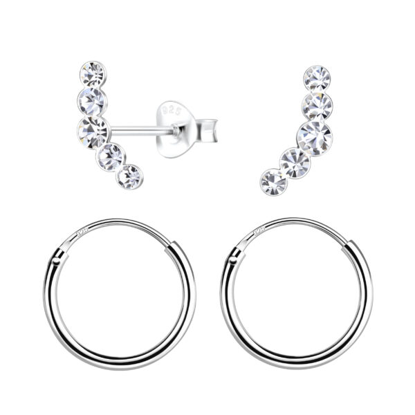 Silver Geometric Stud and Hoop Earrings Set