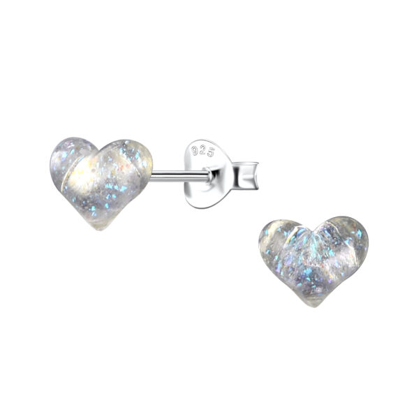 Silver Stud Earrings with Resin Heart