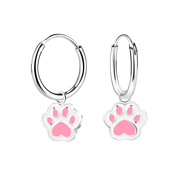 Silver Paw Print Charm Hoop Earrings