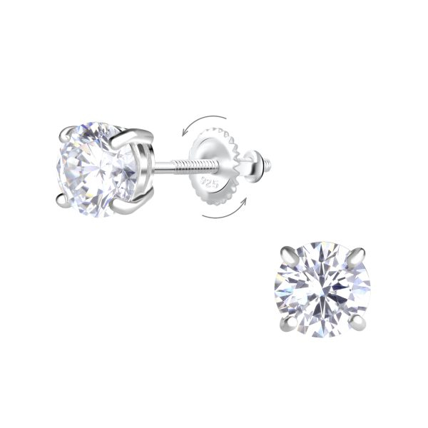 6mm Round Cubic Zirconia Silver Screw Back Earrings